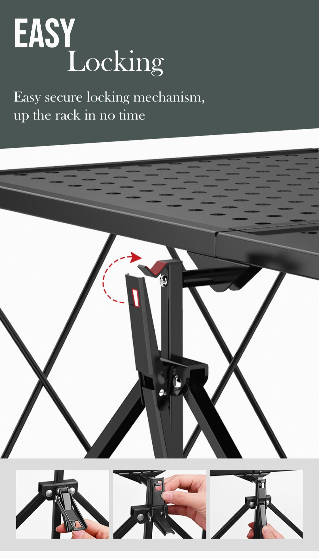 Easy locking - easy locking mechanism, up the rack in no time