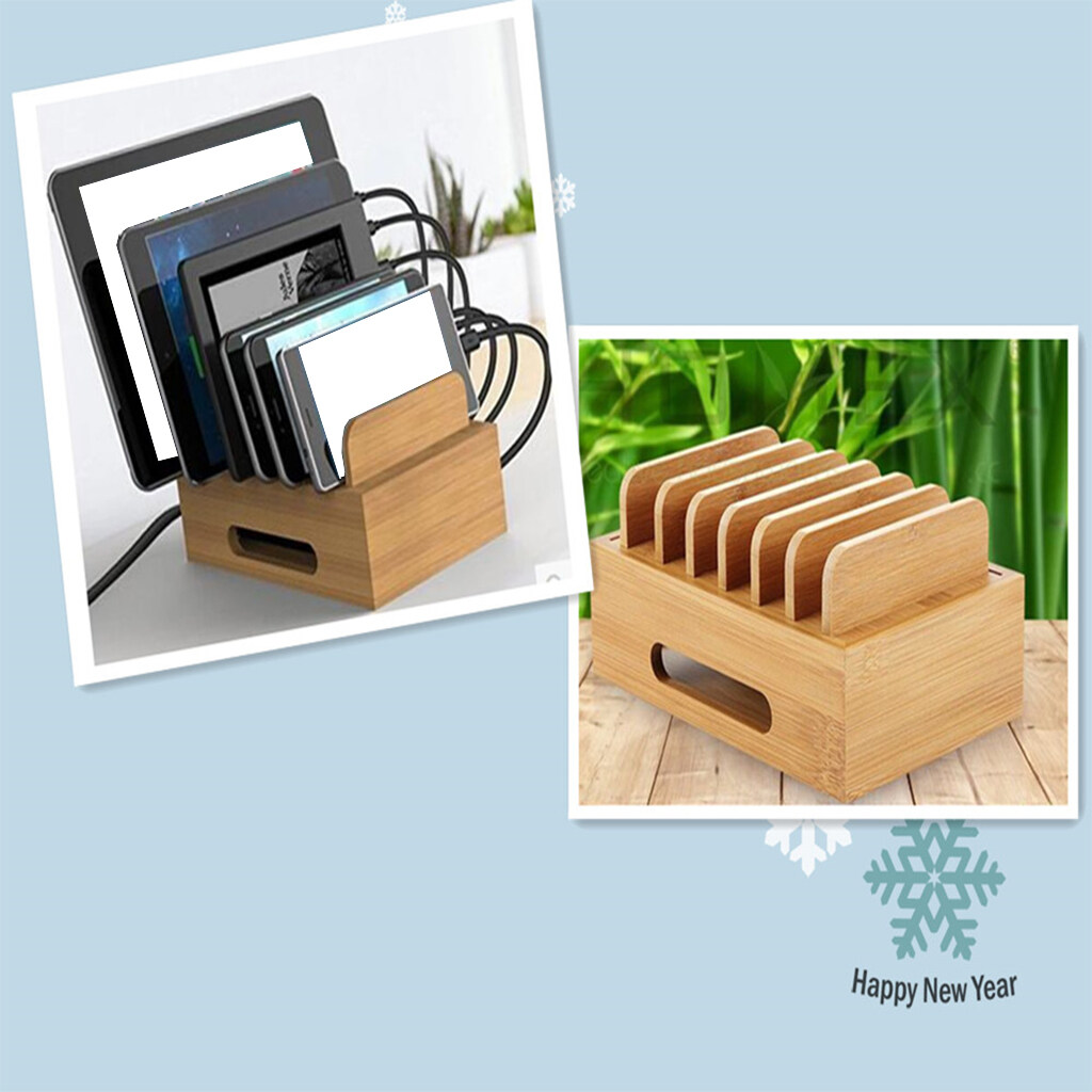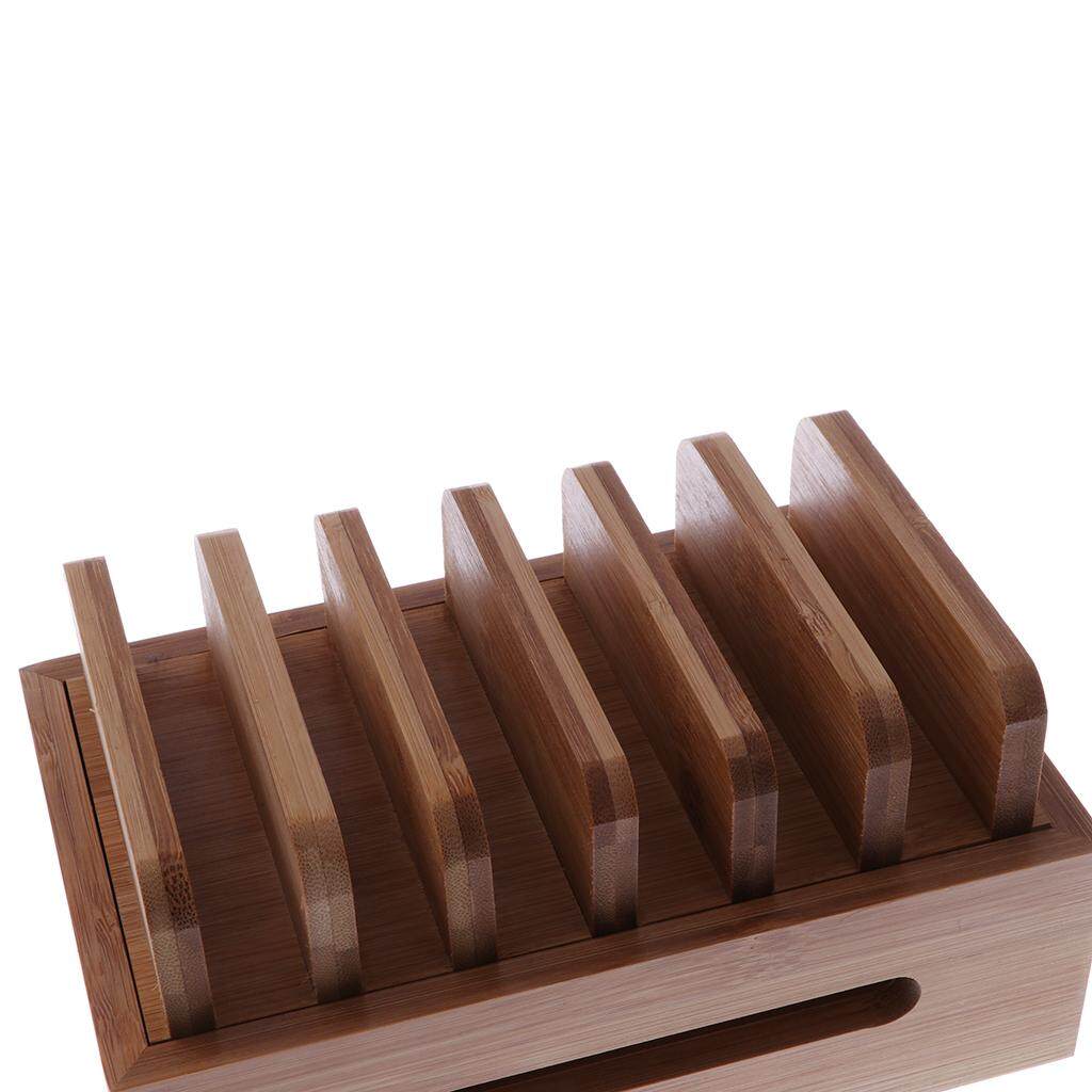milageto Wooden Station Dock 6 Port Charging Stand Organizer for Smartphones, Tablets & Other Gadgets