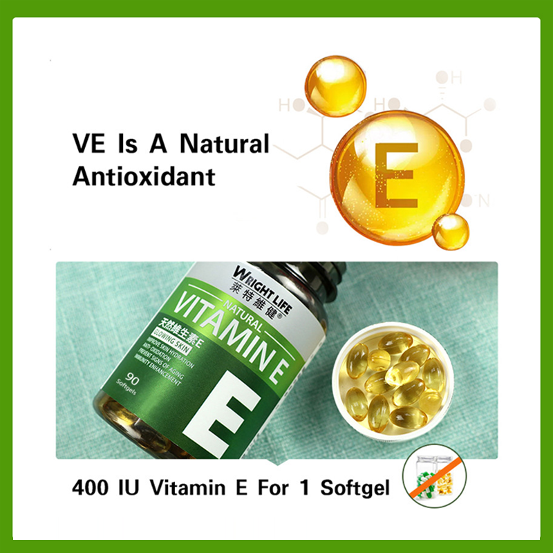 WRIGHT LIFE Vitamin E 90 Soft-gels 400IU Grape Seed Oil Vitamine E Capsule For Face Skin Oral Use Imported Beauty Chloasma Anti-aging Supplement