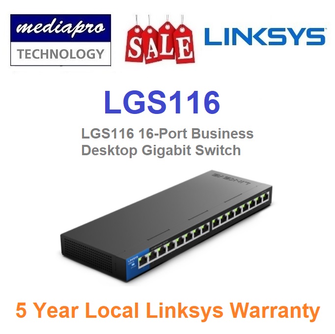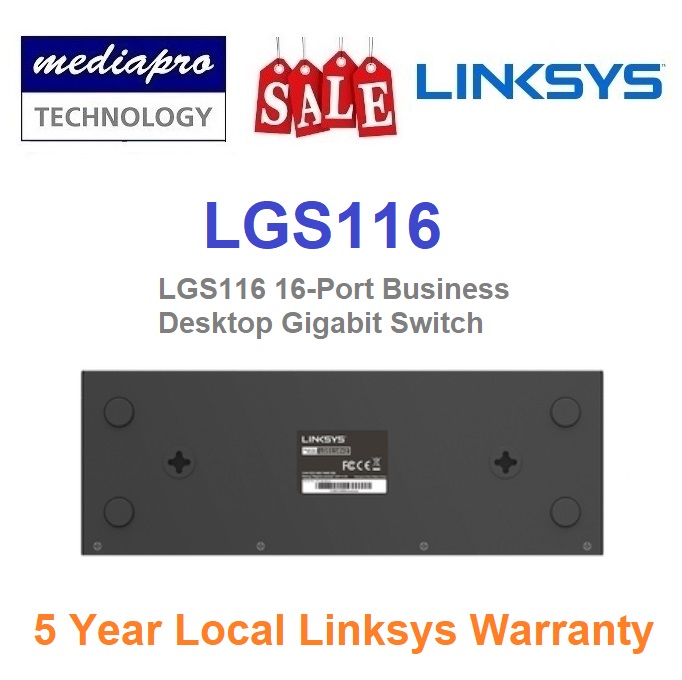 Linksys LGS116 16-Port Business Desktop Gigabit Switch with QoS, Wall Mount - 5 Year Local Linksys Warranty