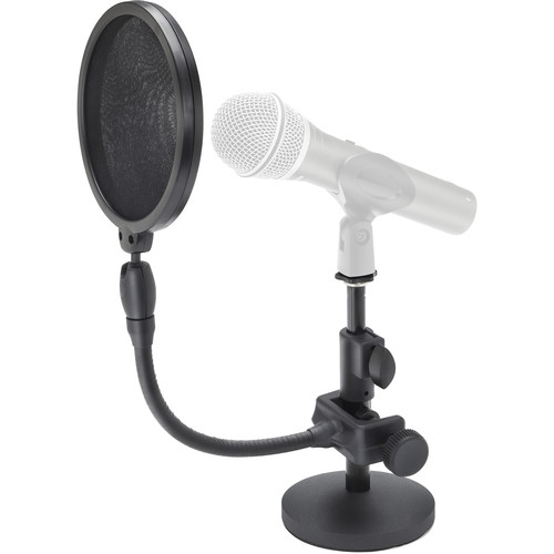 The Samson MD2/PS05 Bundle packages together two complementary products: the MD2 Desktop Microphone Stand, and the PS05 Pop Filter. The MD2's arm can adjust between 6 and 9" in height and locks with a twist clutch. It sits on a die-cast metal base suitable for podcasters and voice-over artists. The PSO5 Pop Filter makes use of dual-layer, 4.5" nylon mesh to reduce vocal plosives and protect the mic from saliva.
