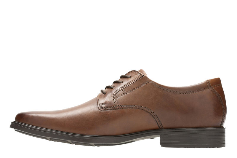 Clarks Tilden Plain Dark Tan Leather Mens Clarks Collection with Ortholite Technology Wide Fit
