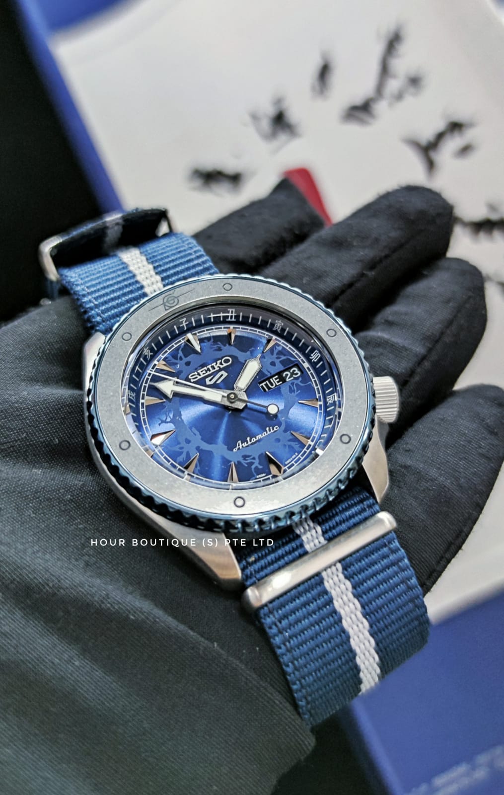 * We Have a Physical Watch Retail Shop ** All Products are Brand New in Box * * All Products come with 1 Year In House Warranty *Brand New with Tags and Complete SetDiameter 41mmNow $399- 6500PC LIMITED EDITION- SEIKO 4R36 SELF WINDING MOVEMENT - 40HRS POWER RESERVE - HARDLEX CRYSTAL- SPECIAL NARUTO SCROLL BOX- 100M WATER RESISTANT Available atHour Boutique3 Coleman StreetPeninsula Shopping Centre#01-03Singapore 179804Payment ByVisa, Masters, Amex, Nets, CashAbout Us- We are Established in 2009 , a Purely Watch Retail Shop that does repairs & Battery Replacements. - We specialise in selling Seikos, Gshocks & BabyG with some other Great Brands like Michel Herbelin & DeepBlue WatchThe company was founded in 1881, when Kintarō Hattori opened a watch andjewelryshop called "K. Hattori"(服部時計店Hattori Tokeiten?)in theGinzaarea ofTokyo, Japan. Eleven years later, in 1892, he began to produceclocksunder the nameSeikosha(精工舎Seikōsha?), meaning roughly "House of Exquisite Workmanship". According to Seiko's official company history, titled "A Journey In Time: The Remarkable Story of Seiko" (2003), Seiko is aJapaneseword meaning "exquisite" or "success" ("exquisite" is usually written 精巧 from Chinesejīngqiǎo, while the meaning "success" is usually written 成功 from Chinesechénggōng).The first watches produced under the Seiko brand appeared in 1924. In 1969, Seiko introduced theAstron, the world's first productionquartz watch; when it was introduced, it cost the same as a medium-sized car. Seiko later went on to introduce the first quartzchronograph. In the late 1980s, Seiko produced the firstKinetic watchthat combined the self-energizing attributes of anautomatic watchwith quartz accuracy. The watch is entirely powered by its movement in everyday wear.In 1985,Orientand Seiko established a jointfactory.The company was incorporated (K. Hattori & Co., Ltd.) in 1917 and was renamed Hattori Seiko Co., Ltd. in 1983 and Seiko Corporation in 1990. After reconstructing and creating its operating subsidiaries (such as Seiko Watch Corporation and Seiko Clock Inc.), it became aholding companyin 2001 and was renamed Seiko Holdings Corporation as of July 1, 2007.Seiko is perhaps best known for its wristwatches, all of which were at one time produced entirely in-house. This includes not only major items such as microgears, motors, hands,crystal oscillators, batteries, sensors, LCDs but also minor items such as the oils used in lubricating the watches and the luminous compounds used on the hands and the dials. Currently watch movements are made inShizukuishi, Iwate(SIIMorioka Seiko Instruments),Ninohe, Iwate(SII Ninohe Tokei Kogyo),Shiojiri, Nagano(Seiko Epson) and their subsidiaries in China, Malaysia and Singapore. The fully integrated in-house production system is still practised for luxury watches in Japan.