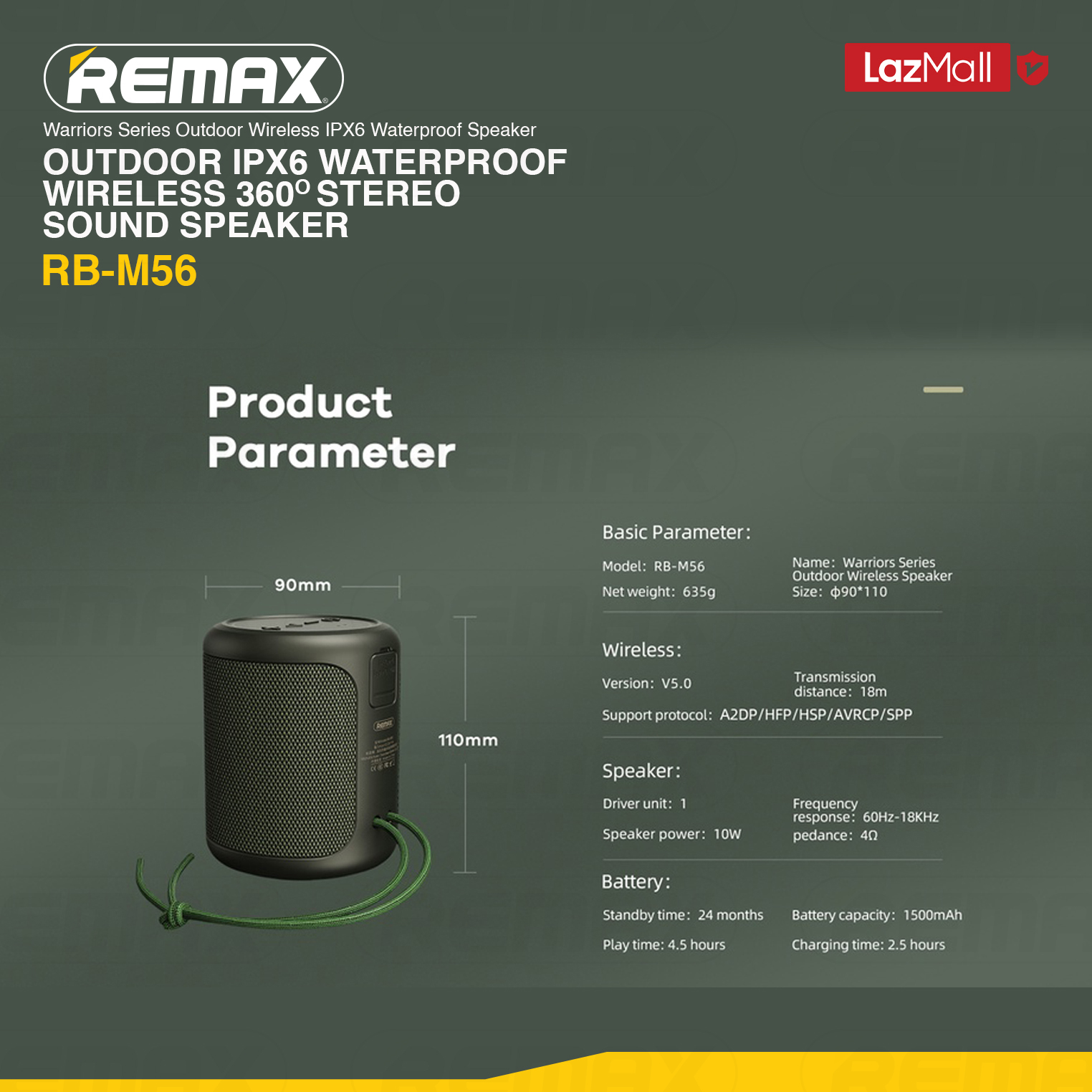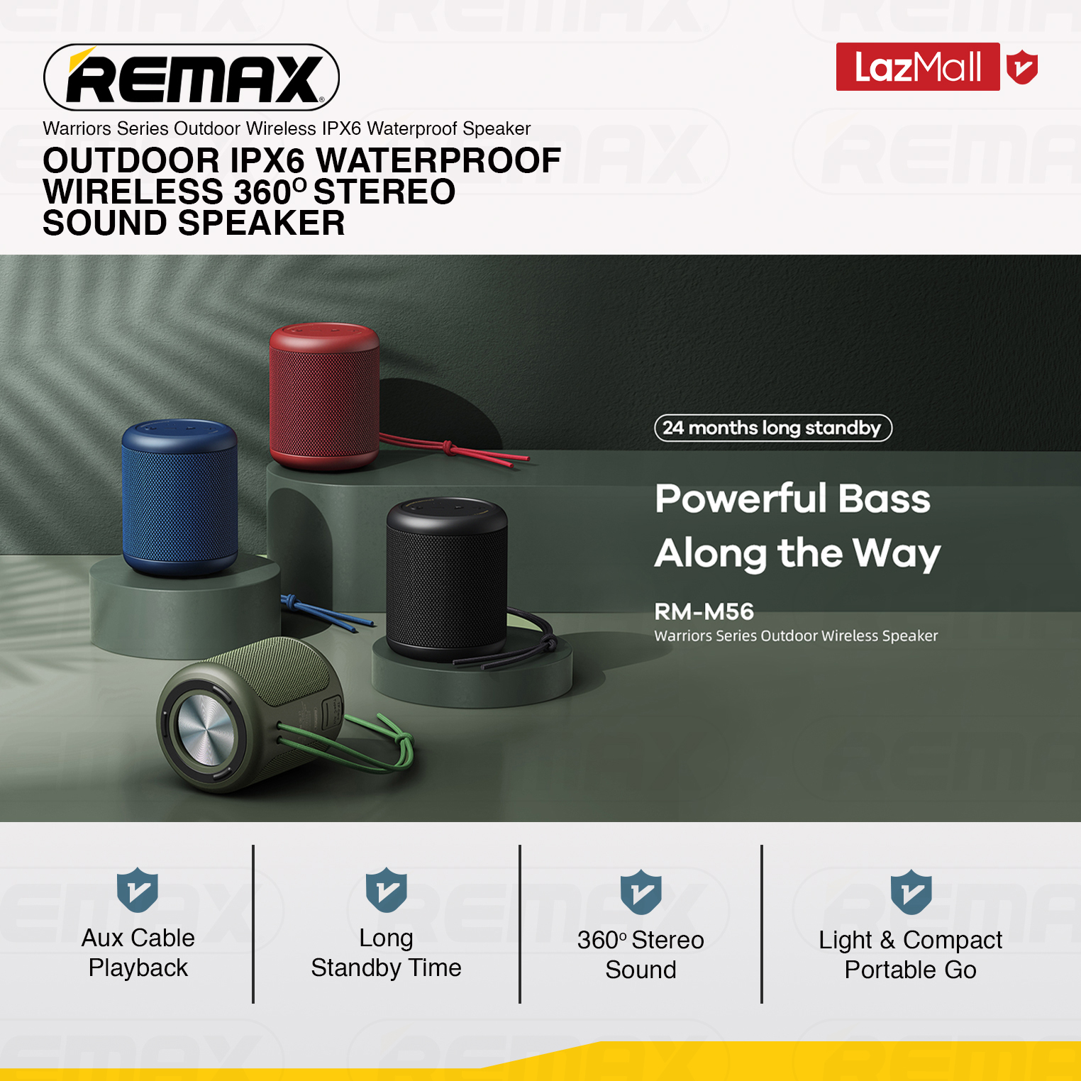 [Remax Audio] RB-M56 Compact Outdoor IPX6 Waterproof with Powerful Bass & Long Battery Life Bluetooth Speaker