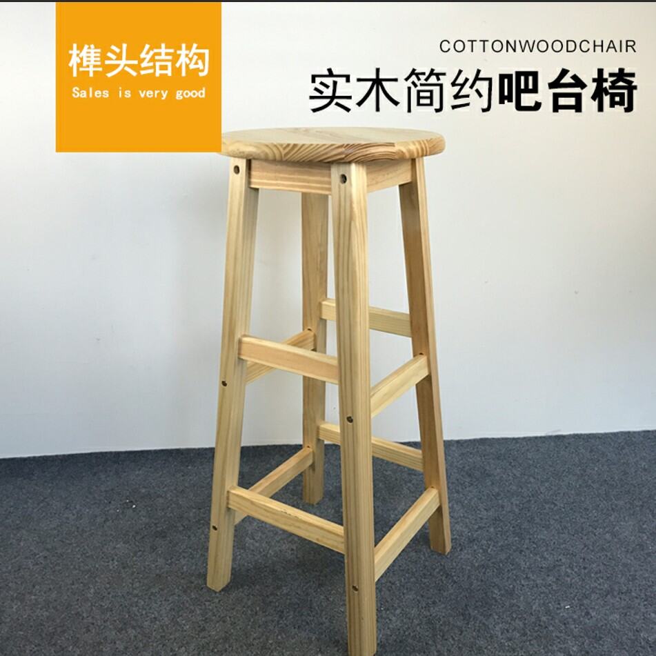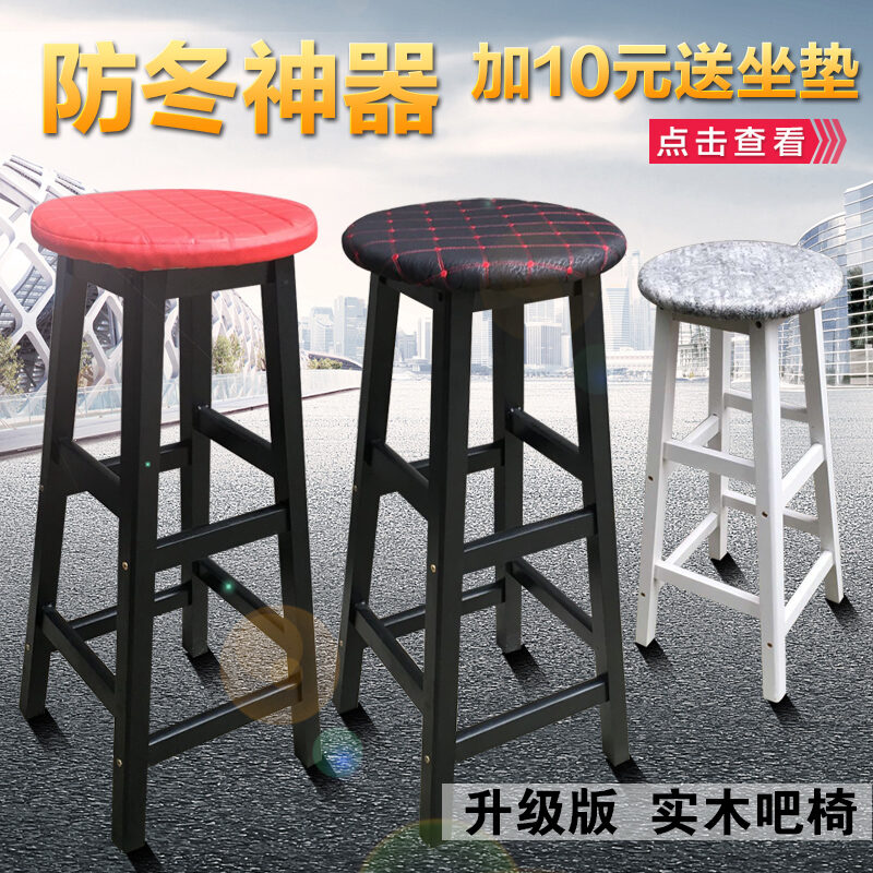 Solid Wood Bar Chair Simple Black and White Bar Chair Retro Stool European Front Desk Bar Mobile Phone Shop round Stool Creative