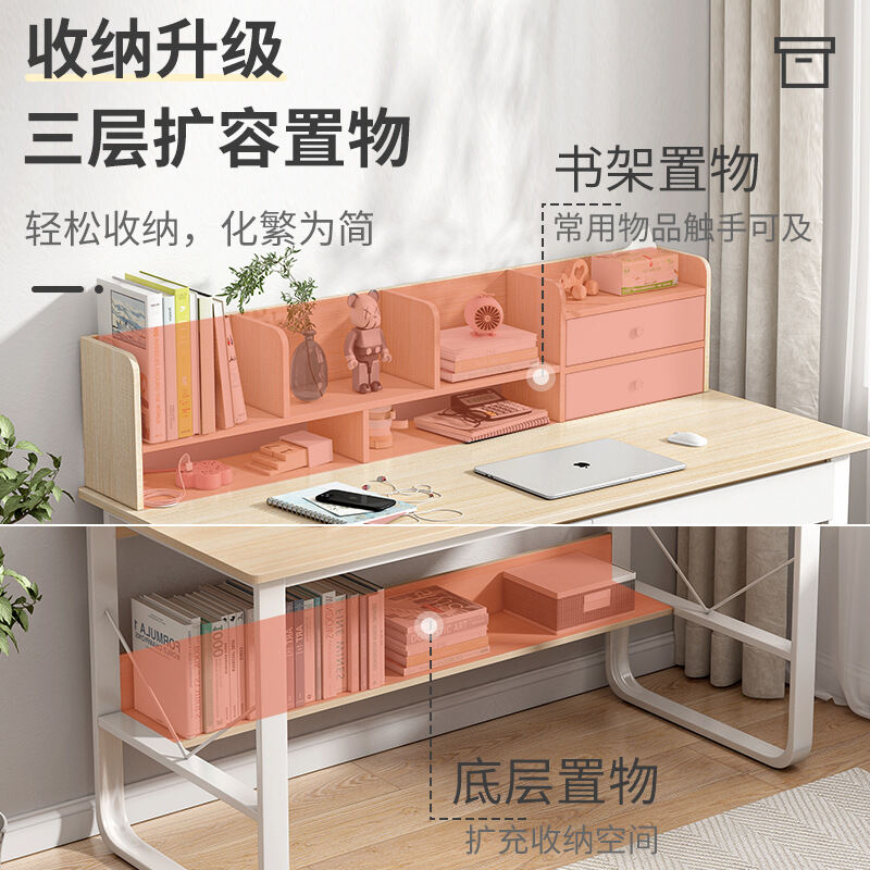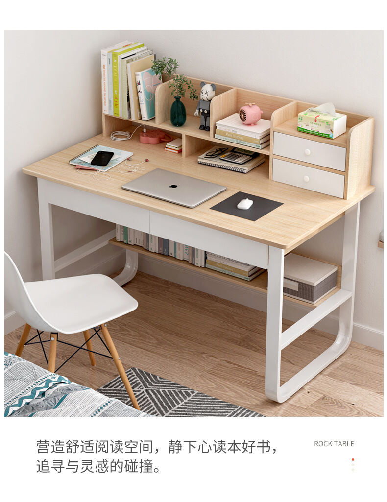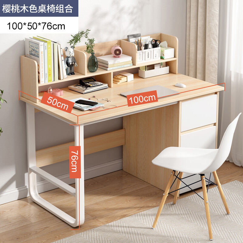 Writing Desk Student Home Junior High School Student Desk with Chair Bookshelf Integrated Computer Desk Simple Bedroom Desk