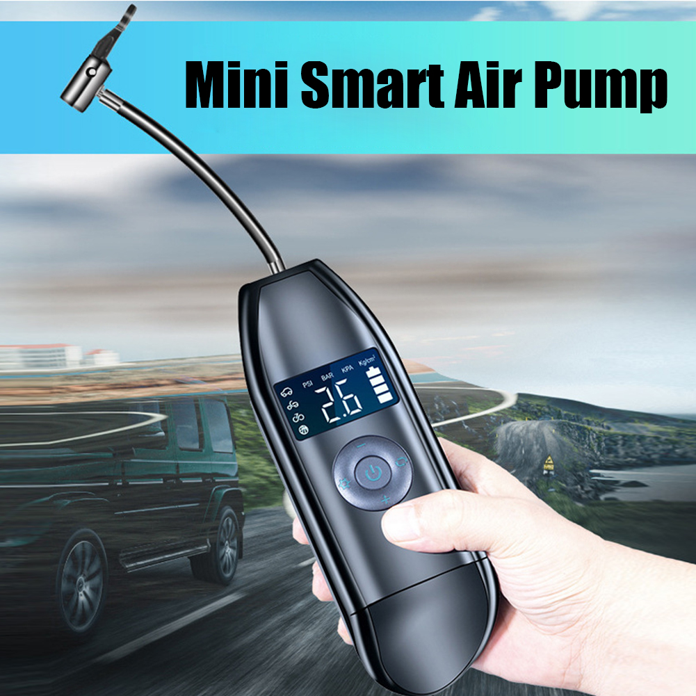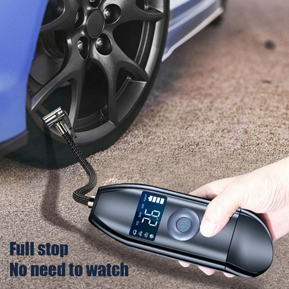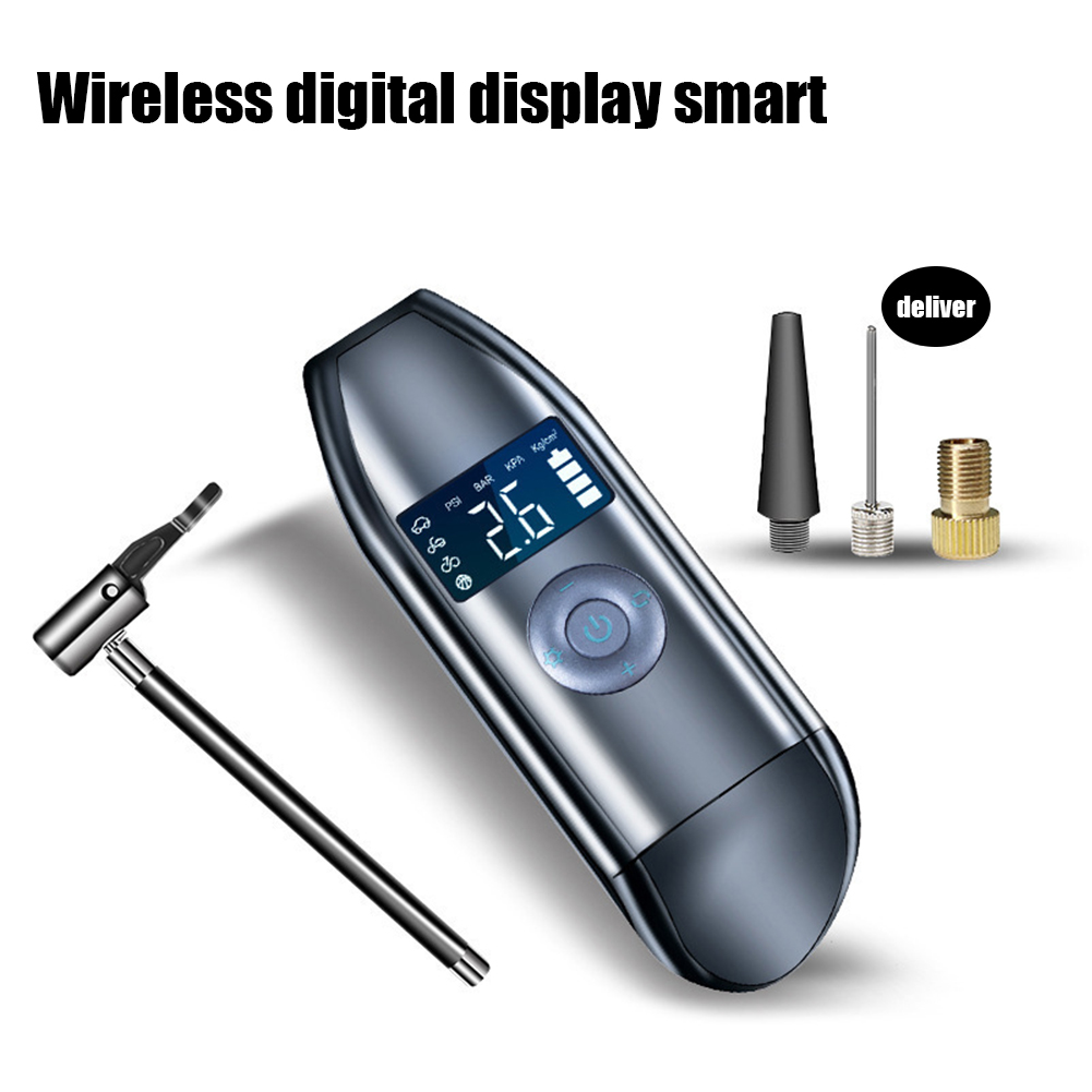 Leesa Portable Mini Air Pump Rechargeable Car Bicycle Tire Inflator Air Compressor Digital Display Auto-Stop for Bike Motorcycle Balls, Style:Wireless digital display smart 9057 USB cable