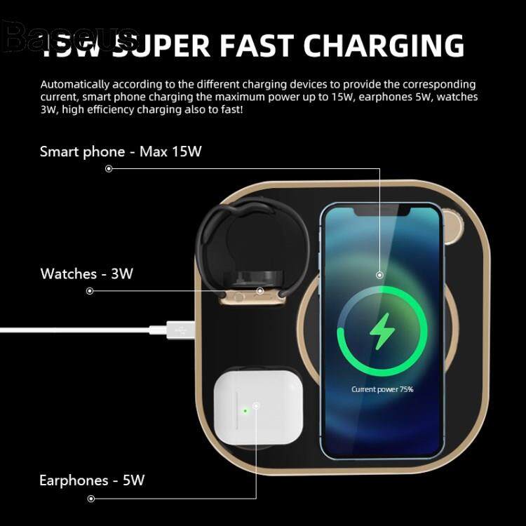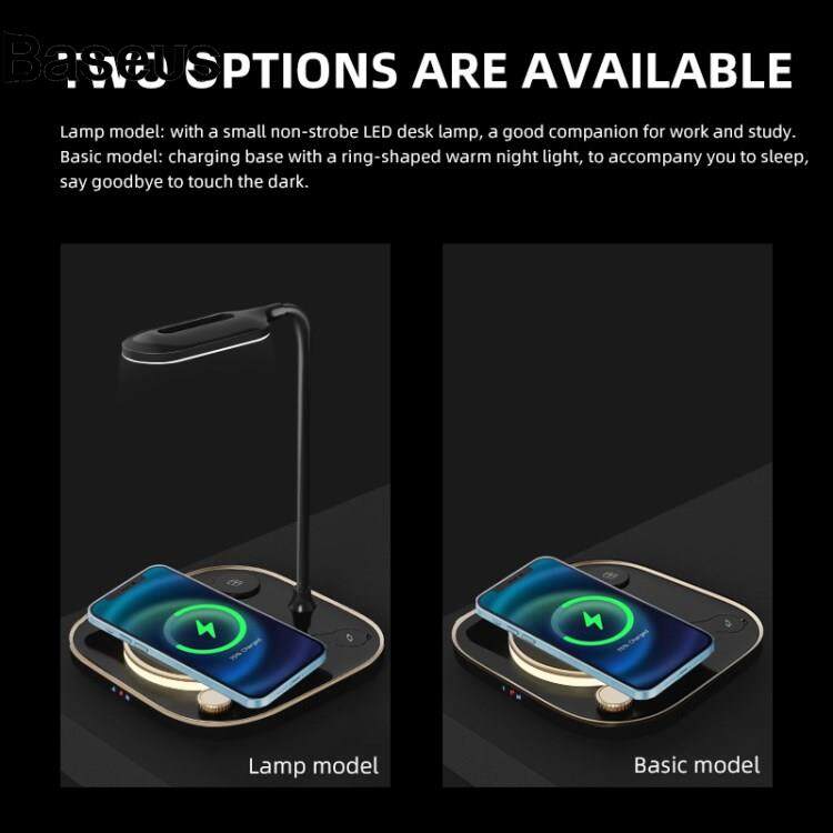 Baseus X3 15W 3 in 1 Magnetic Wireless Charger Multi-Function Fast Charging Station for Mobile Phone Watch Headset with Night Light