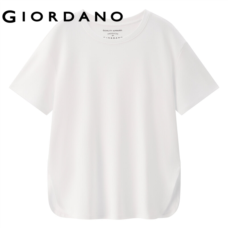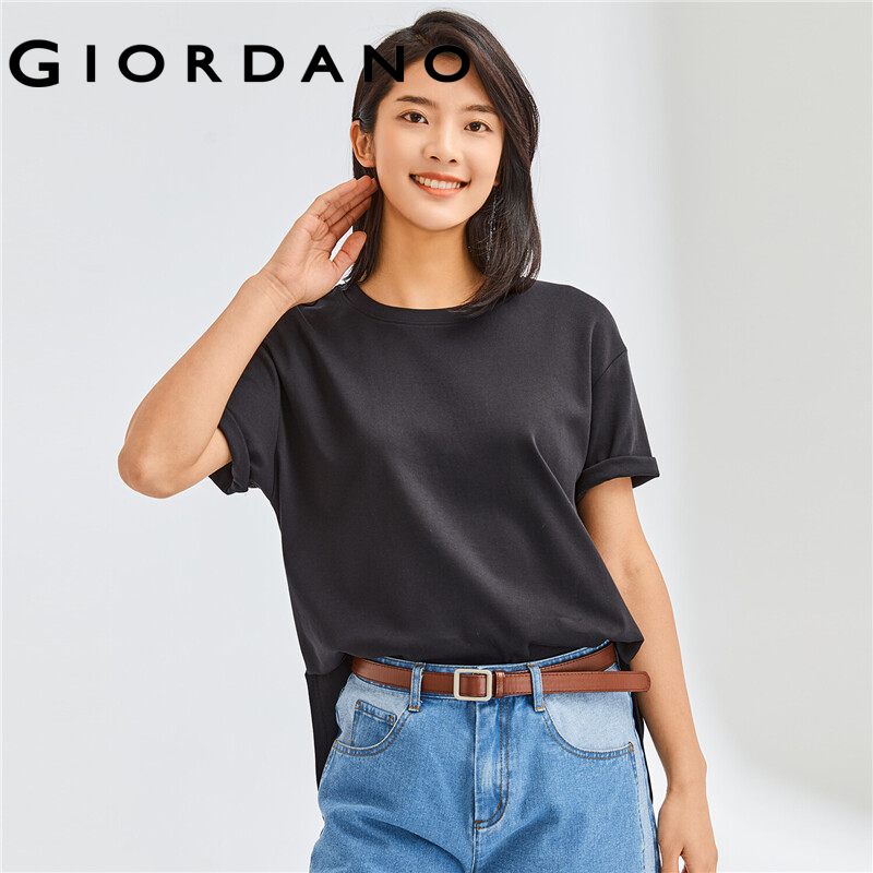GIORDANO Women T-Shirts Long Design Solid Color Casual T-Shirts Crewneck 100% Cotton Short Sleeve Summer Relaxed Tops 05322386