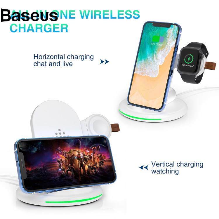 Baseus W-02 3 in 1 15W Wireless Charger for iPhone 13/12 Series/AirPods Pro Portable Charging Dock for Apple Watch