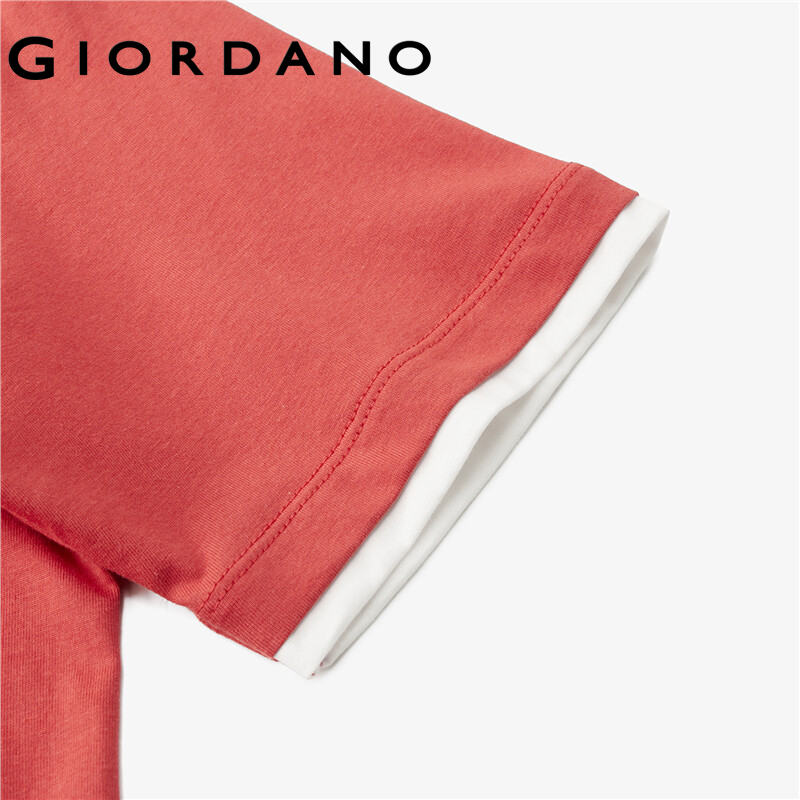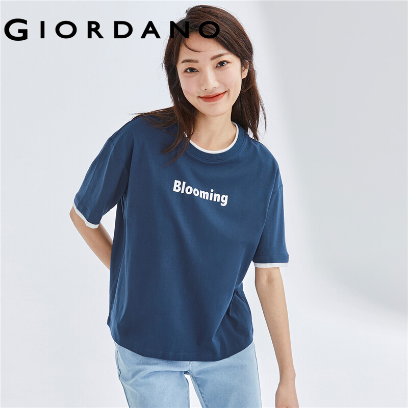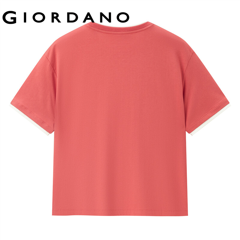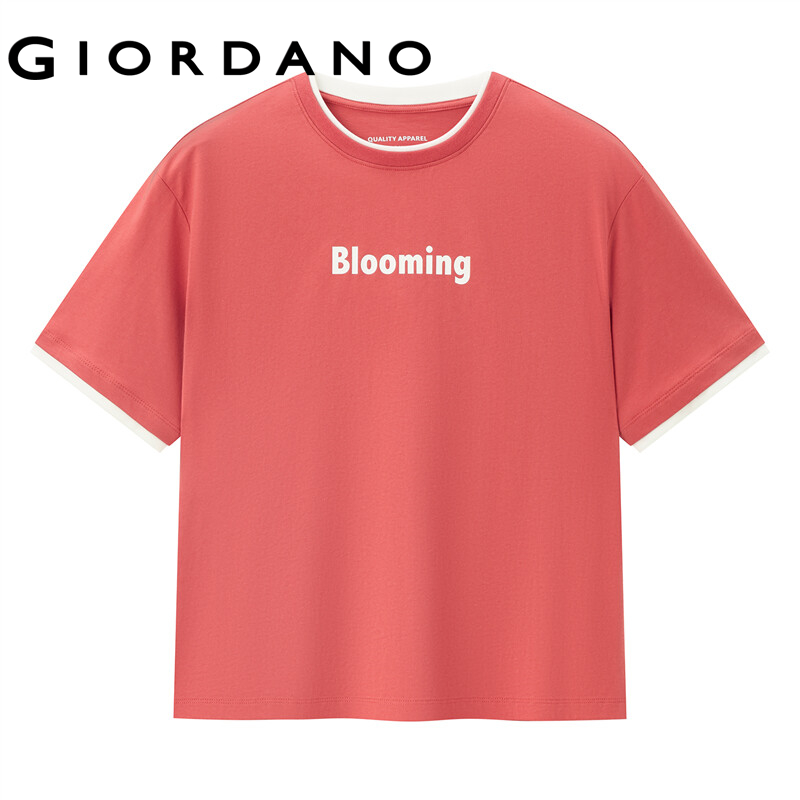 GIORDANO Women T-Shirts Letter Print Fake 2-Piece 100% Cotton T-Shirts Summer Short Sleeve Loose Relaxed Basic T-Shirts 05322390