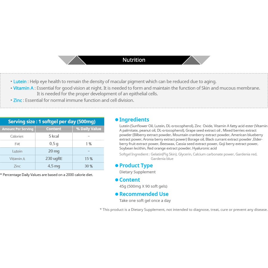 Atomy Eye Lutein 500mg – 3 MONTHS SUPPLY