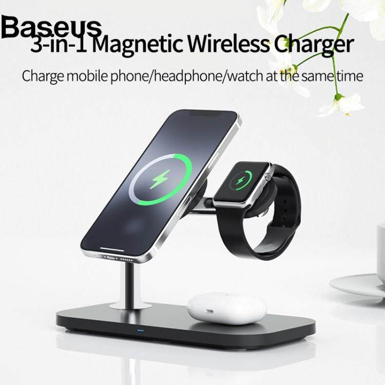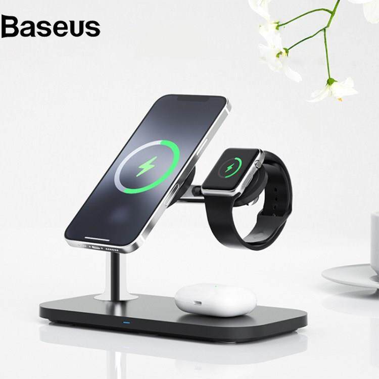 Baseus S36 3-in-1 15W Magnetic Wireless Charger Desktop Fast Charging Stand for iPhone 12 Series iWatch AirPods