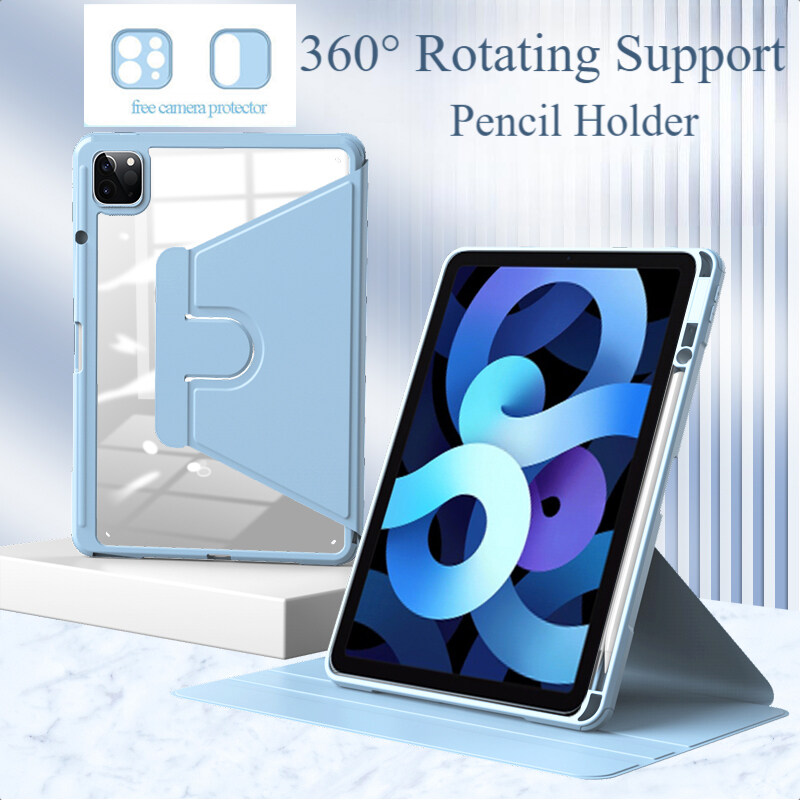 360 Degree Rotatable Smart Case for iPad Air 5th 4th Gen iPad Air 1 5th 6th 2 9.7 iPad Pro 2021 11 12.9 12 9 Inch 2022 2021 2020 2018 iPad 9th 8th 7th Gen with Pencil Holder Casing Cover