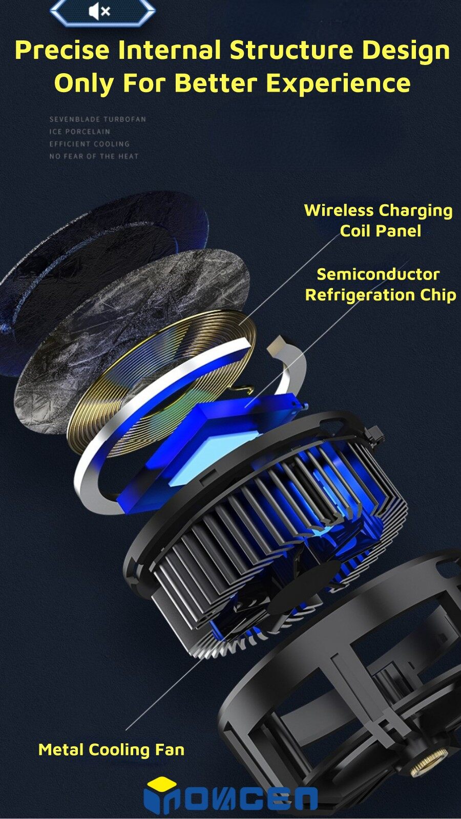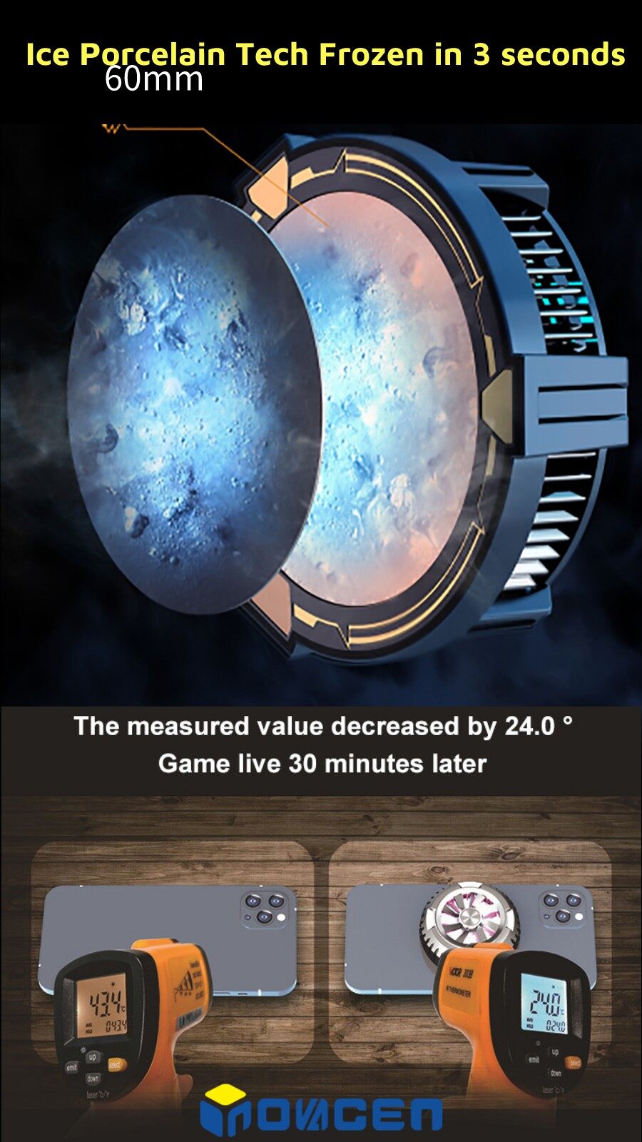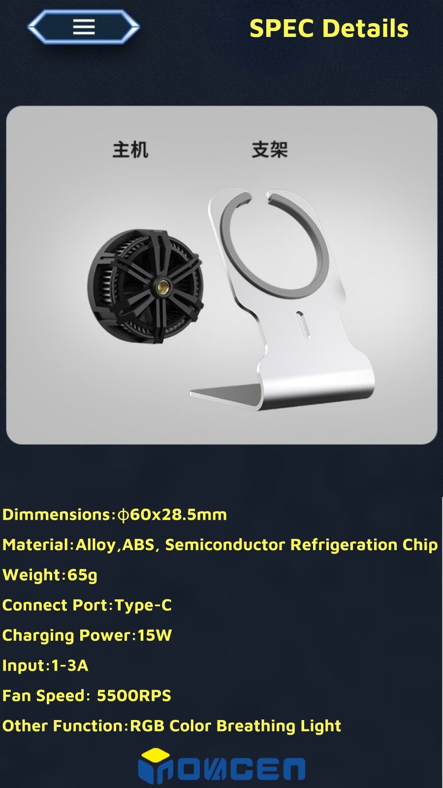 INOVAGEN Magnetic Phone Cooler With Phone Stand&Wireless Charging/Phone Radiator For Gaming PUBG Heat Dissipation MagSafe Support,15W QC/PD Fast Charging