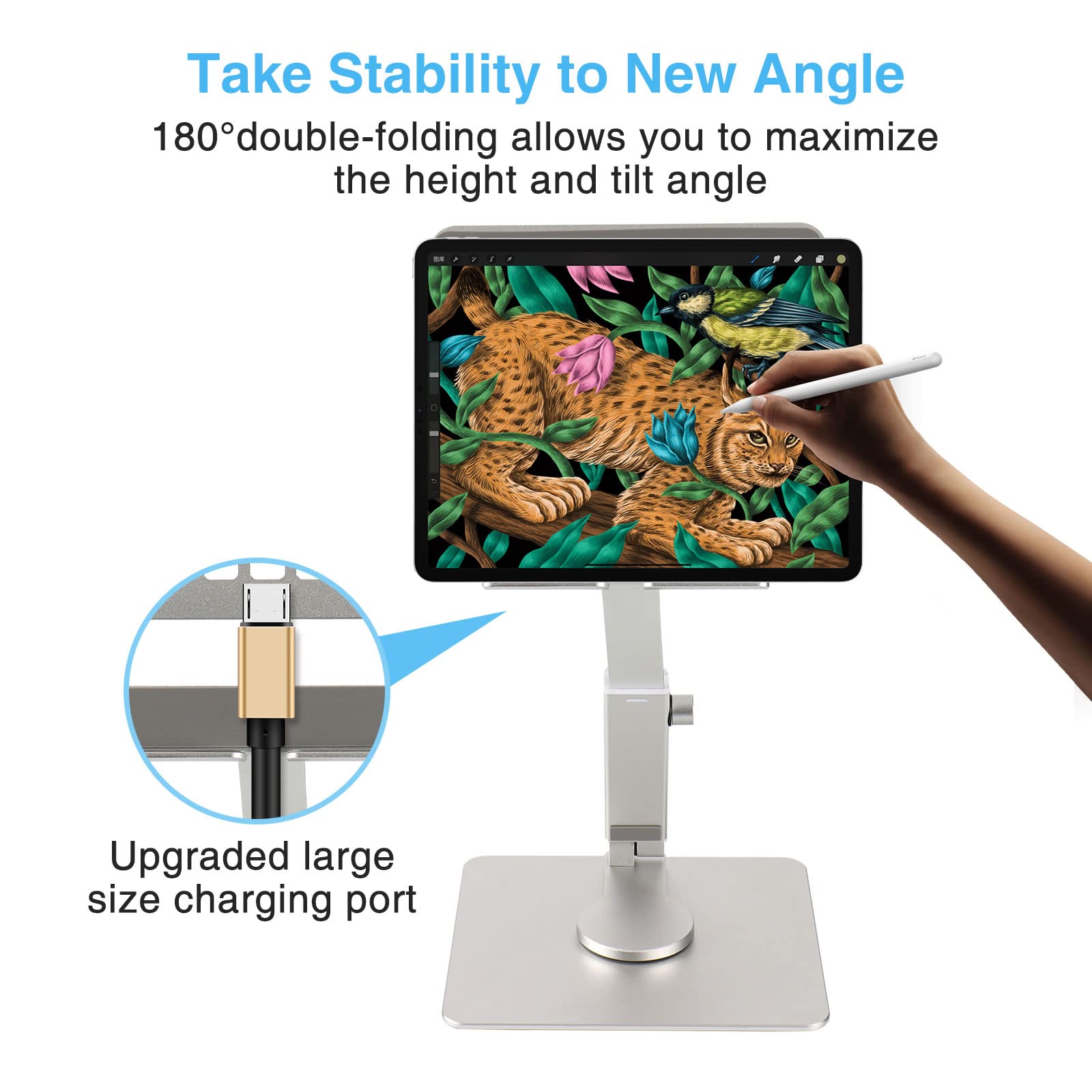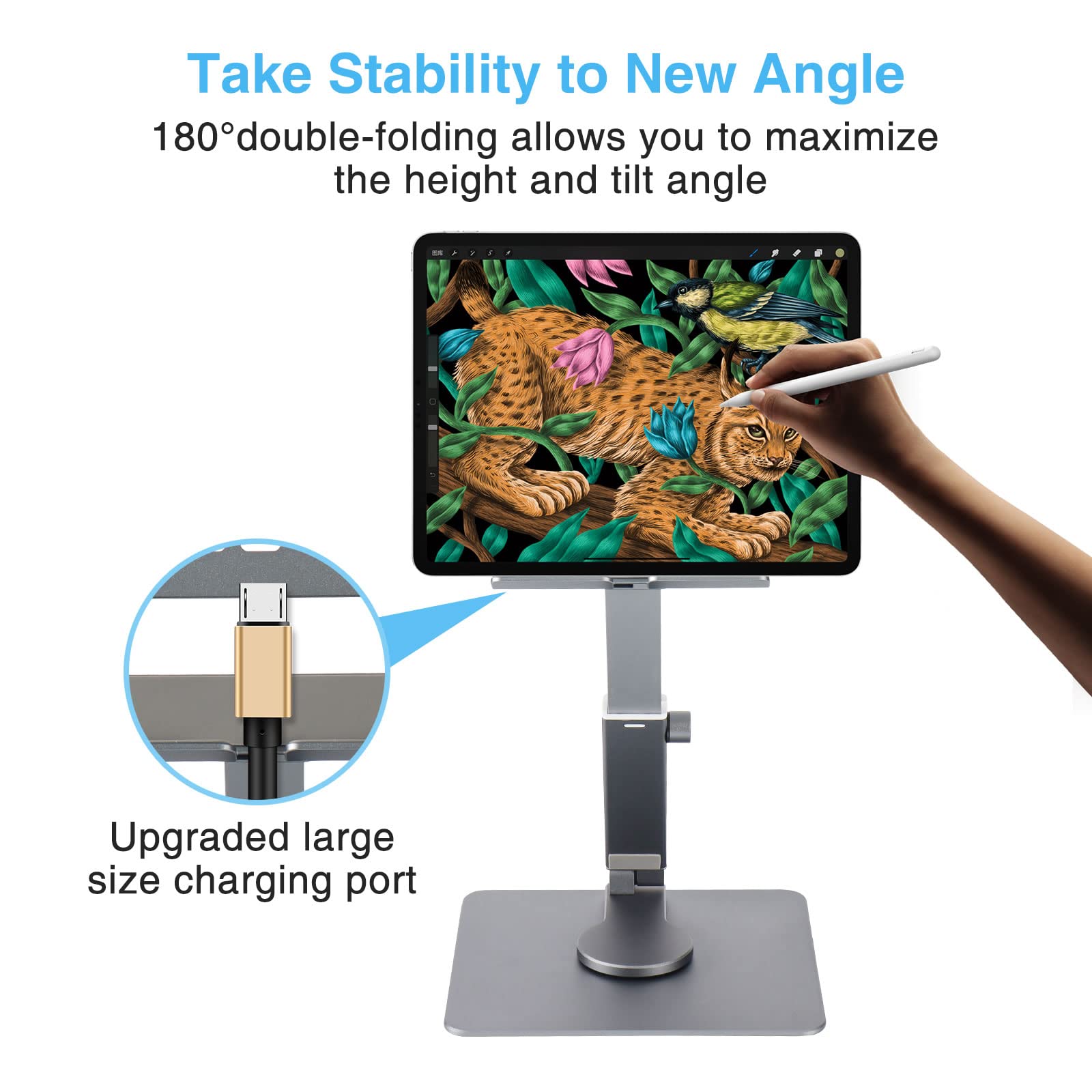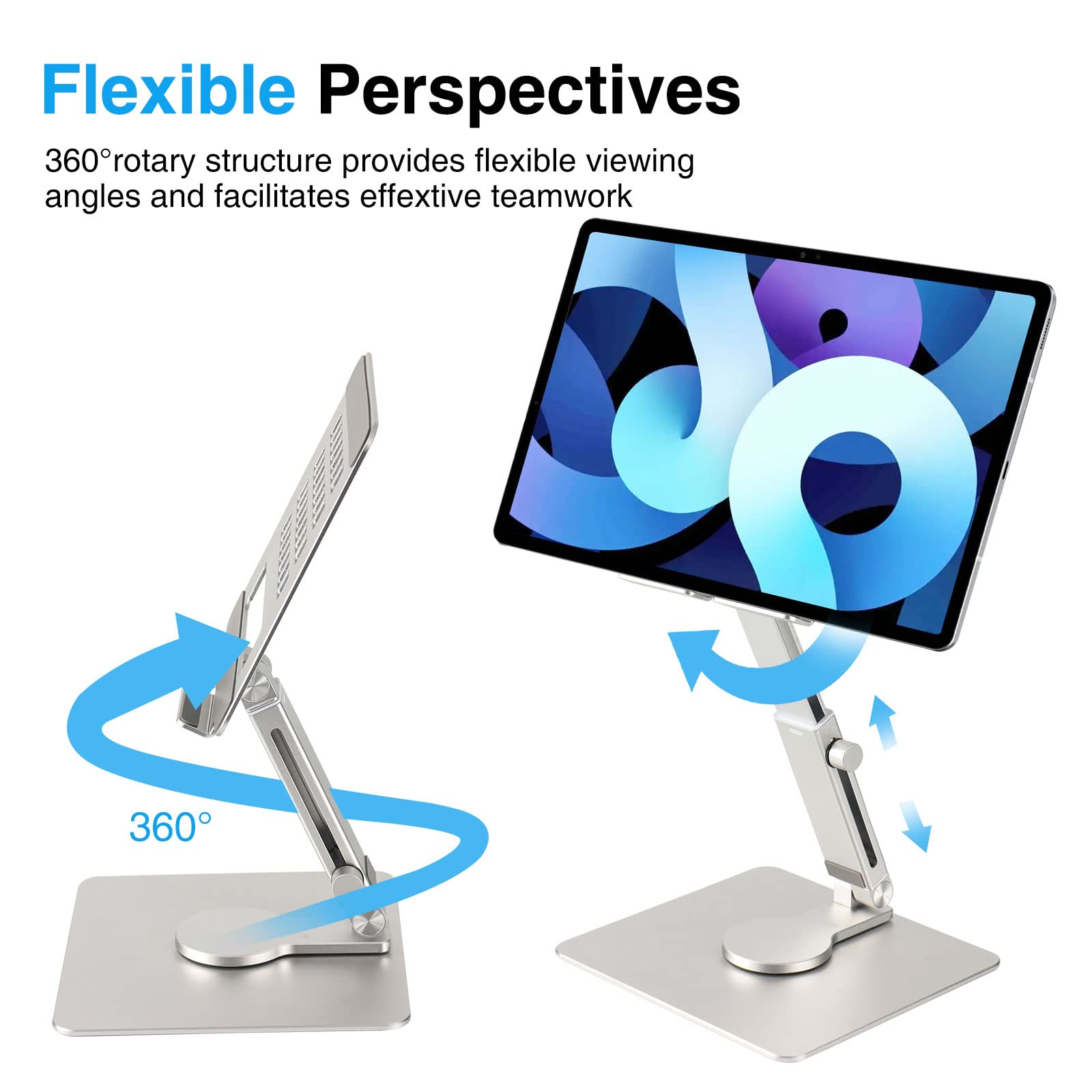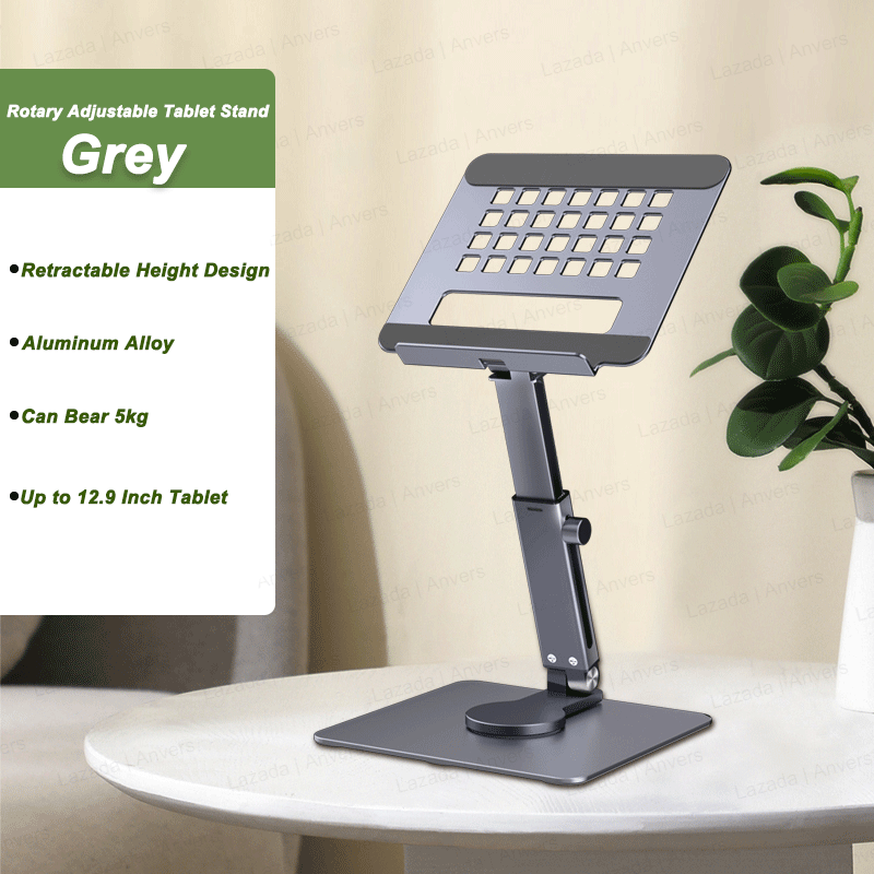 Anvers Adjustable Tablet Stand Holder, 360°Rotating Tablet Mount, Foldable Stand for Ipad,Heavy Duty Aluminum Desktop Stand for All Phone/Tablet 0-12.9 inch