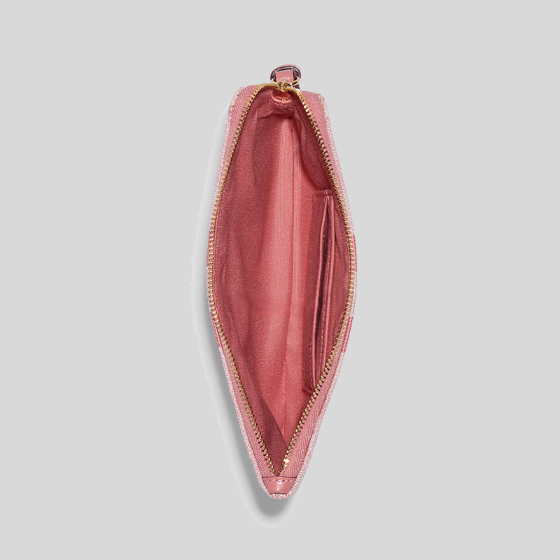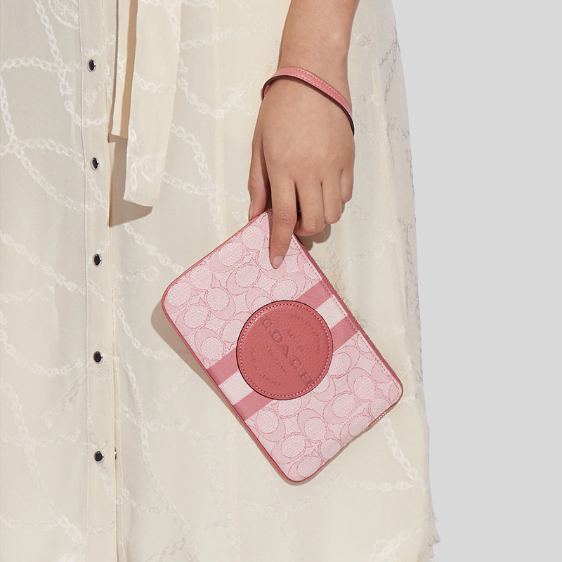 Coach Dempsey Large Corner Zip Wristlet In Signature Jacquard With Stripe And Coach Patch Taffy C8841