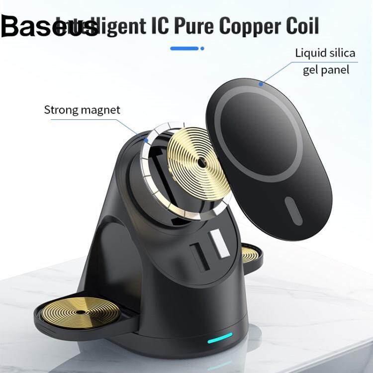 Baseus LFX-179 3 in 1 15W Wireless Charger Folding Fast Charging Dock Magnetic Charging Station for iPhone iWatch AirPods