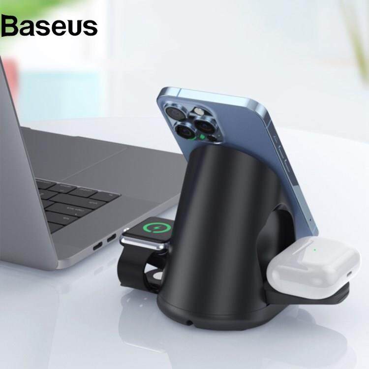 Baseus W-02 3 in 1 15W Wireless Charger for iPhone 13/12 Series/AirPods Pro Portable Charging Dock for Apple Watch