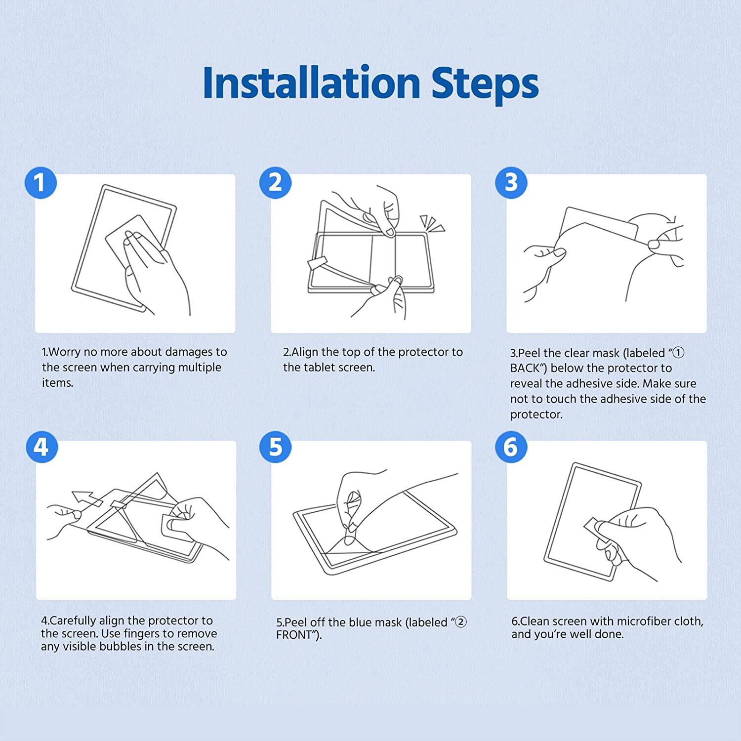 Note: Please clean the dust in advance, and press the Like Paper screen protector for a while when you are installing.