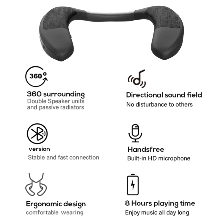 Free up your hands and ears, with this wearable speaker on your neck, you can enjoy music whether you are cooking dinner or doing outdoor sports such as walking, riding a bicycle, climbing mountains, etc.