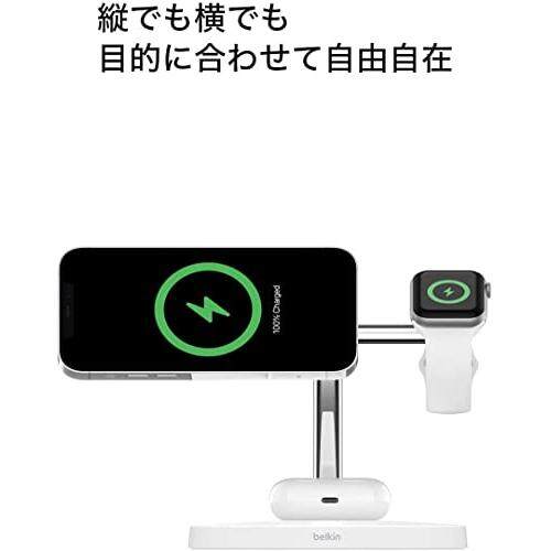 Belkin 3 in 1 MagSafe Charger, Maximum 15W Fast Charging, Wireless Charger, MagSafe Official Certification, Compatible with iPhone 14 / 13 / 12 / Apple Watch / AirPods, White WIZ009dqWH