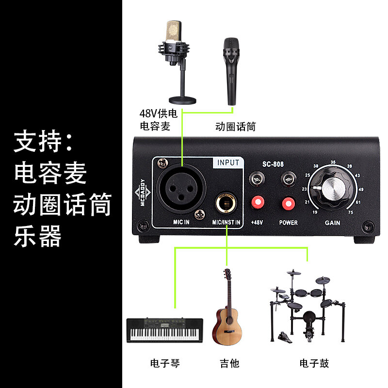 Microphone Amplifier Professional Moving Coil Microphone Transistor Pre-Microphone Amplifier Compatible with Condenser Mic Musical Instrument Wireless Microphone