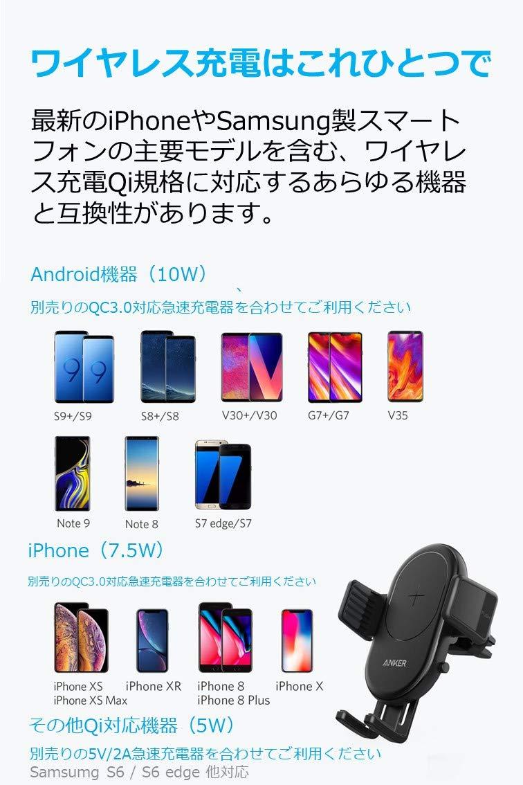 Anker PowerWave 7.5 Car Mount(10W Wireless Charger mount on Aircon Vent)【Qi Approved/360° turn/ fast charging】iPhone XS / XS Max / XR / X / 8 / 8 Plus、Galaxy S9 / S9+ / S8 / S8+、 LG G7、Other Qi Suppor
