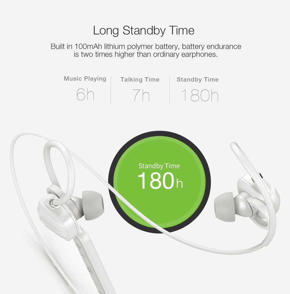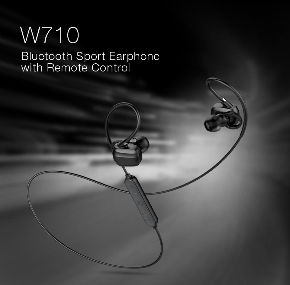 GGMM W710 Wireless Bluetooth Sport Earphone With Remote Control Microphone Black White Noise Reduction In Ear Hook Noise Cancelling Comfortable 7Hrs Waterproof High Quality Sound Earbud Hook HD Clarit