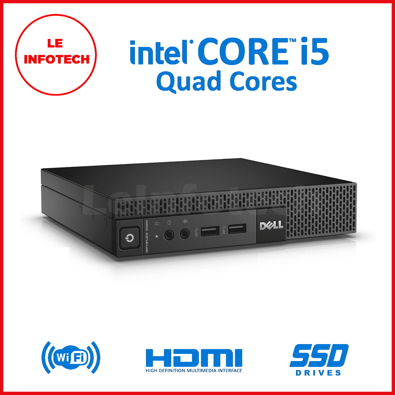 Dell Optiplex 3020 Micro Desktop Quad Core Intel i5-4590T 8/16 GB RAM New 256/512 GB SSD Win10 Pro Used Free USB+WiFi DisplayPort to HDMI One month warranty - LeInfotech