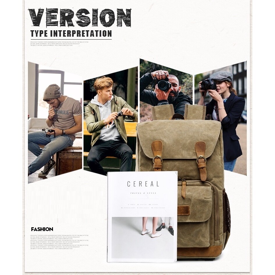 Selens Vintage Large Backpack SLR Camera Bag Waterproof Canvas 15 inch Laptop Photo Bag For Cannon Nikon Fuji Camera