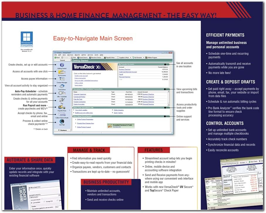 • Instantly Create & Print Secure Checks & Drafts for Business & Personal Accounts. Works with Inkjet and Laser Printers. Compatible with Windows 11, 10, 8.x, 7